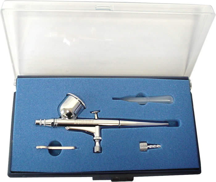 Myslím si, že málo který modelář tuší, k čemu byla původně určená pistole, kterou používá k stříkání svých modelů. Zrodila se v USA mezi světovými válkami a tehdejší grafici ji využívali k torbě reklamních plakátů. Americká retuš, jak se této technice začalo říkat, našla během války uplatnění při vytváření agitačních materiálů. Od těch dob se technika Americké retuše rozvinula ve svébytný umělecký obor. V průběhu času se změnilo využití. S Airbrushem se začaly stříkat malůvky na auta, motorky, letadla a dokonce i na lidská těla.Na trh dorazily nové dvou činné stříkací pistole, které umožňují přerušovat nejen tok barvy, ale i vzduchu.