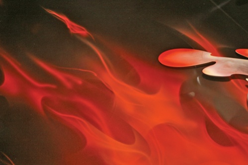 Někdy se dívám a postup a také si říkám, že to zkusím stejným způsbem. Někdy je to horší, podobné nebo to zase budu muset přebrousit. Ale stejně to chce zkoušet znovu a znovu. Setkávám se tu s názory, že někdo se šablonou a někdo zásadně bez šablony, maskování. Ale kombinace obojího bude asi nejlepší. I jednoduchý typ šablony más přivede na základ, který poslouží pro další rozvržení malby.Dnes to budou plameny, více v článku.
