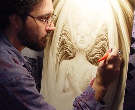Airbrushové malby jsem začal dělat v únoru 1972 na požádání známého člověka – experta na čtení z dlaně, který vytvářel psychedelické kresby. V té době jsem byl zaměstnaný tvorbou velkorozměrných obrazů Passages, které měly vždy stejnou formu. To znamenalo, že opakování základní formální struktury se stalo záležitostí rutiny. Proto jsem začal odbočovat k těmto experimentálním kresbám jednou nebo dvakrát týdně. Práce začínala odpoledne a obvykle končila nad ránem. Na první kresby jsem používal černou akrylovou barvu, ale později jsem pracoval se zředěným Indickým inkoustem na velkých rozměrech.