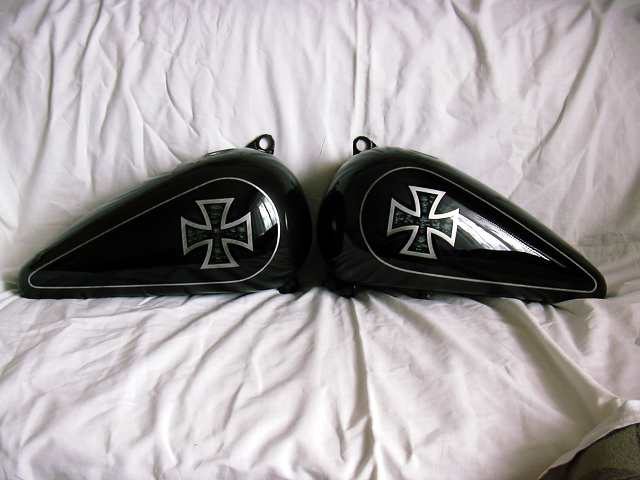 Pokud se rozhodnete pro airbrush,musím přidat vlastní historku. Po výběru z mnoha dílen, které se malováním zabývají musíte vše projednat s daným umělcem. Z osobní zkušenosti mohu doporučit probrat budoucí vzhled motocyklu nad sklenkou něčeho destilovaného. Pomůže to představivosti a rozjede fantazii, pozor však na množství. Snadno se může stát, že si ráno už jen matně pamatujete, jak jste chtěli mít na nádrži krásný decentní Bar&Shield a v tom vám dotyčný umělec volá a ptá se: „Hele a na tom kufru si chtěl mít tu pinupku blond nebo brunetku?“