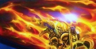 Když potkávám motorkáře, občas se najde někdo, kdo nechce mít na své motorce sofistikované orly, čím dál méně populární symboly Ameriky, nebo šelmu. Trend v tématech airbrushe pro motocykly jde od obrazů spíše na grafiku a to jak pinstriping neboli linkování až po abstraktní vzory (patterny) a nebo plameny v různě barevném provedení. Abych pravdu řekl, v Česku se moc linkované nebo „hot rod“ grafické plameny nevidí, jedná se spíše o výjimku. Daleko oblíbenější jsou barevné variace plamenů v kombinaci s nějakým vhodným motivem. Na malbu jedné podobné práce se nyní podívejme.