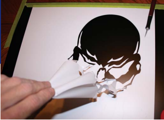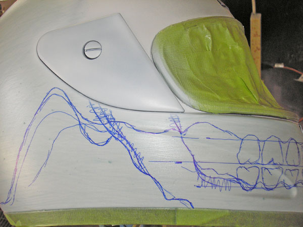 Ne, že by následující malý postup byl ukázkou dokonalé práce, ale je to ukázka jednoho z mnoha způsobů jak udělat airbrush na plechu. V našem případě na víčku od auta. Někdo používá na přenos obrázku fólii, někomu stačí papír, někdo si obrázek bez šablony naskicuje a FREEHAND "volně z ruky" rovnou pistolkou maluje. Tenké čáry, jemné přechody, dále se dají kombinovat i druhy barev a také výše zmýněné způsoby maskování. Fantazii se meze nekladou. Nedávno jsme v několika článcích popisovali projektor a jeho využití při malbě. Je do dobrý pomocník, obzvláště na větších plochách. V tomto článku nám postačí tři barvy, airbrush pistolka, skalpel a trochu trpělivosti.