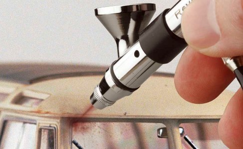 Není pravidlem, že se při airbrush používá k malbě pouze pistolka. Takže se setkáme s celou řadou kombinací, šablon, štětců, linek, fólií atd. O to více si vážíme člověka, který pistolku používá jako štětec, nepotřebuje žádné další pomůcky a pracuje volně z ruky.