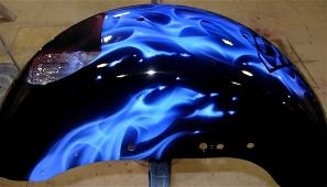Když potkávám motorkáře, občas se najde někdo, kdo nechce mít na své motorce sofistikované orly, čím dál méně populární symboly Ameriky, nebo šelmu. Trend v tématech airbrushe pro motocykly jde od obrazů spíše na grafiku a to jak pinstriping neboli linkování až po abstraktní vzory (patterny) a nebo plameny v různě barevném provedení. Abych pravdu řekl, v Česku se moc linkované nebo „hot rod“ grafické plameny nevidí, jedná se spíše o výjimku. Daleko oblíbenější jsou barevné variace plamenů v kombinaci s nějakým vhodným motivem. Na malbu jedné podobné práce se nyní podívejme.