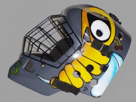 Práci jsem začal zbroušením původního nástřiku přilby. K broušení používám vodní smirkový papír zrnitosti 800 a víc. Následně přišla první vrstva barvy, na kterou jsem použil akrylátový, lesklý sprej. Znovu jsem přebrousil jemné nedostatky a přilbu ještě jednou přestříkal. Po-té jsem se pustil do vytváření šablon a masek. Šablony na čísla a nápis jsem zhotovil pomocí plotru. Masky na sršně a těžební věž pak ručně z papírové pásky.