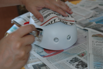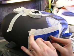 Následující postup není asi pro všechny, ale pro ty, kteří nemají prostory a místo kde by mohli lakovat. Jak užbylo zde několikrát řečeno, hlavně při použití „smradlavých „ barev a laku musíme hodně větrat a použít masku, respirátor, protože tím opravdu vážně ohrožujeme své zdraví. Aerosol vniká do plic, do krve se nám dostávají toxické látky a časem si přivodíme nejen plicní problémy a záněty průdušnic, ale také riskujeme nemoc jater a ledvin, tedy orgánů, které se starají o očistu našeho těla od cizorodých látek. Takže na malé lakování to doma jde, ale…chránit si zdraví musíme. V následujícím postupu se podíváme na to, jak se dá udělat lak a obrázek na ochrannou helmu pro extrémní sporty, kterou majitel využívá hlavně na skateboardu a kole pro U-rampu. To že se zbláznil a na balkón a do kuchyně dotáhnul kompresor, to je věc jiná. Více v brutálním článku pro začátečníky…