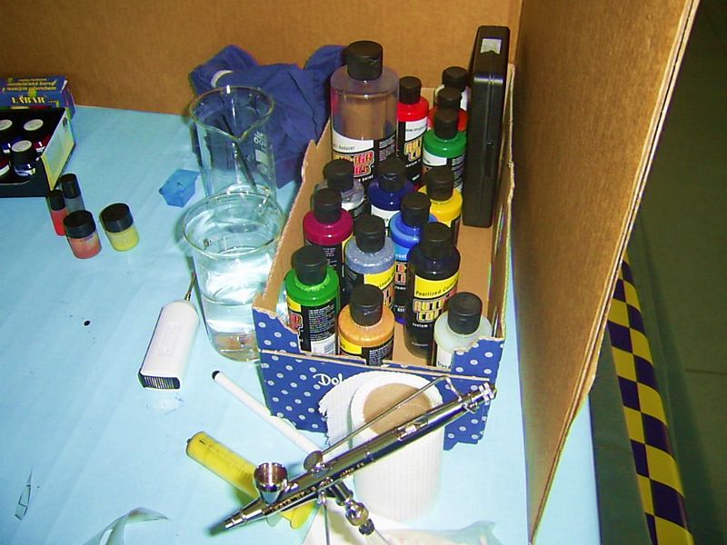 Chodím po obchodním domě a co nevidím: barvy na všechno možné, na sklo, keramiku a také-na textil. Dlouho si je prohlížím a pak je dávám do košíku. Vypadají sice jako hobby, ale co můžu za těch 160,-Kč chtít. Hlavně když budou držet na tričku. Kdosi říkal, že je měl pistoli a že to docela šlo. Dívám se na ně zálibně do košíku a těším se na to, až je použiju. Po cestě ještě kupuji dvě levná trička, jedno černé a jedno bílé, sadu syntetických štětců s tvrdým vláknem a snad je to dost na experimenty. Createx je dražší, více kryje a je ho víc, proč jsem si tyto barvy koupil?